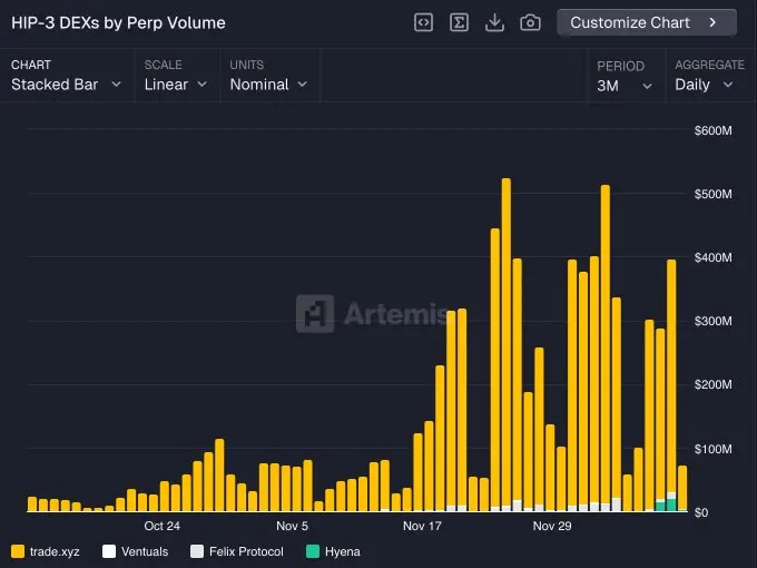 预计到 2026 年,HIP-3 市场将占据 Hyperliquid 总交易量的显著份额。